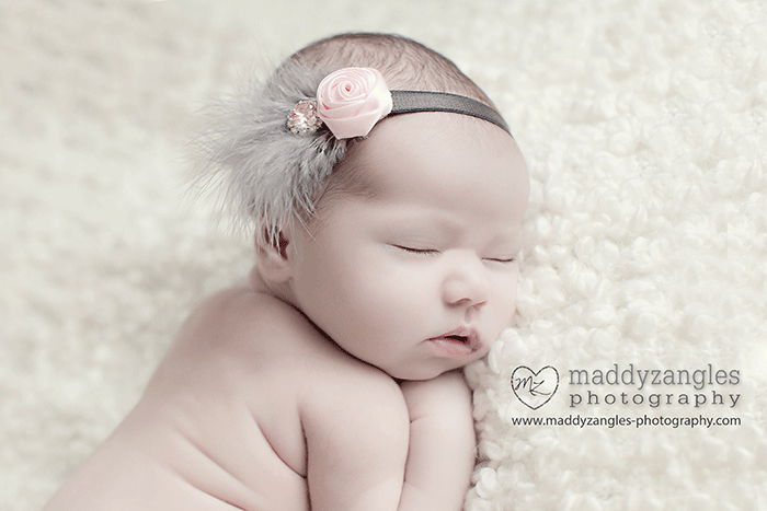 Pink satin rose with grey marabou feather and rhinestone