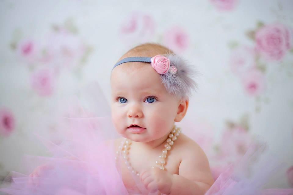 Pink satin rose with grey marabou feather and rhinestone