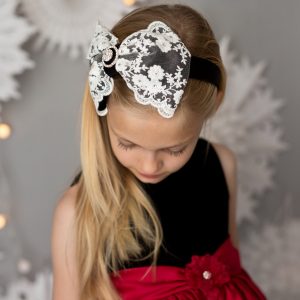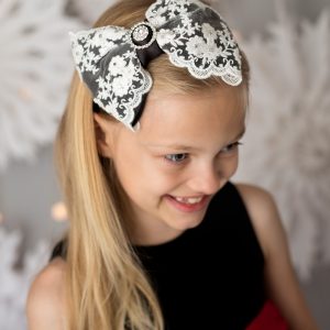 Oversized black and white lace bow with crystals and rhinestone on alice band