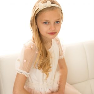 White satin alice band decorated with a crystal trim and Swarovski crystals