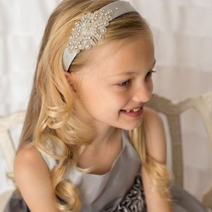 Crystal design on silver satin alice band