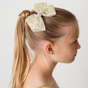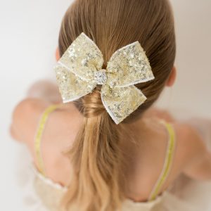Oversized 6’’ grosgrain bow with Swarovski crystals on an alligator clip.