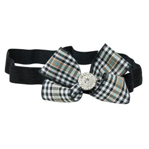 Satin flowers with rhinestones on soft elastic headband