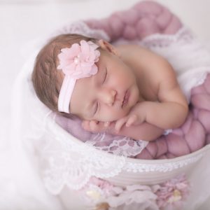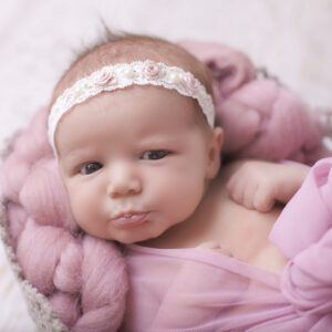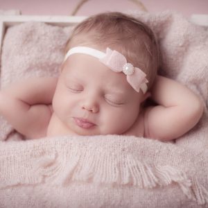 Dusky felt pink bow with pearl on a soft elastic headband