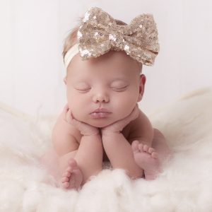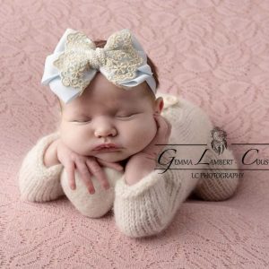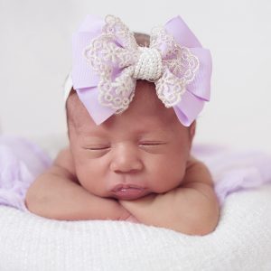 White grosgrain double bow on soft elastic band