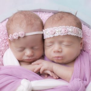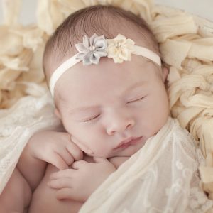 Two satin flowers with rhinestones on soft elastic headband