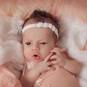 Ivory butterfly on soft elastic decorated with pearls and Swarovski diamante