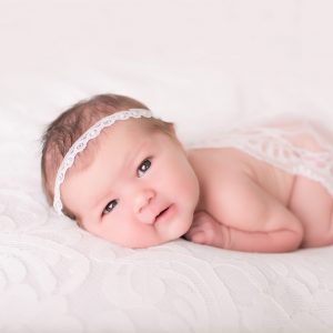 White butterfly on soft elastic decorated with pearls and Swarovski diamante