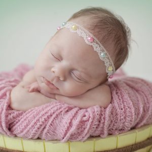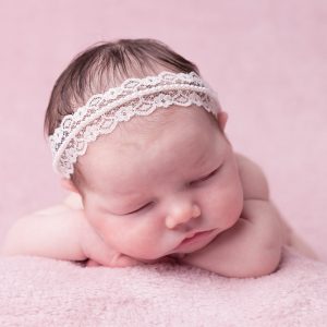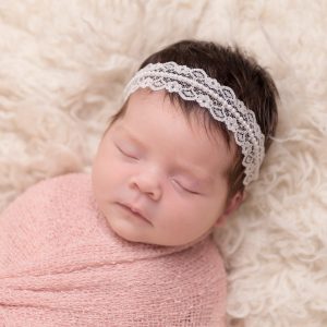 Delicate ivory lace hand finished with a pearl trim with a soft elastic backing