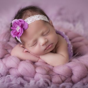 Purple silk flower with a dazzling rhinestone centre on a soft elastic headband
