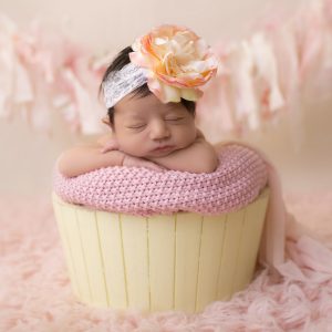 Pink chiffon flower with rhinestone on soft elastic lace headband