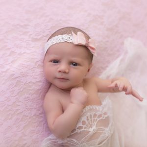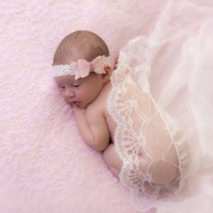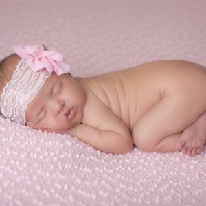 Soft felt pink bow with glitter on soft lace headband