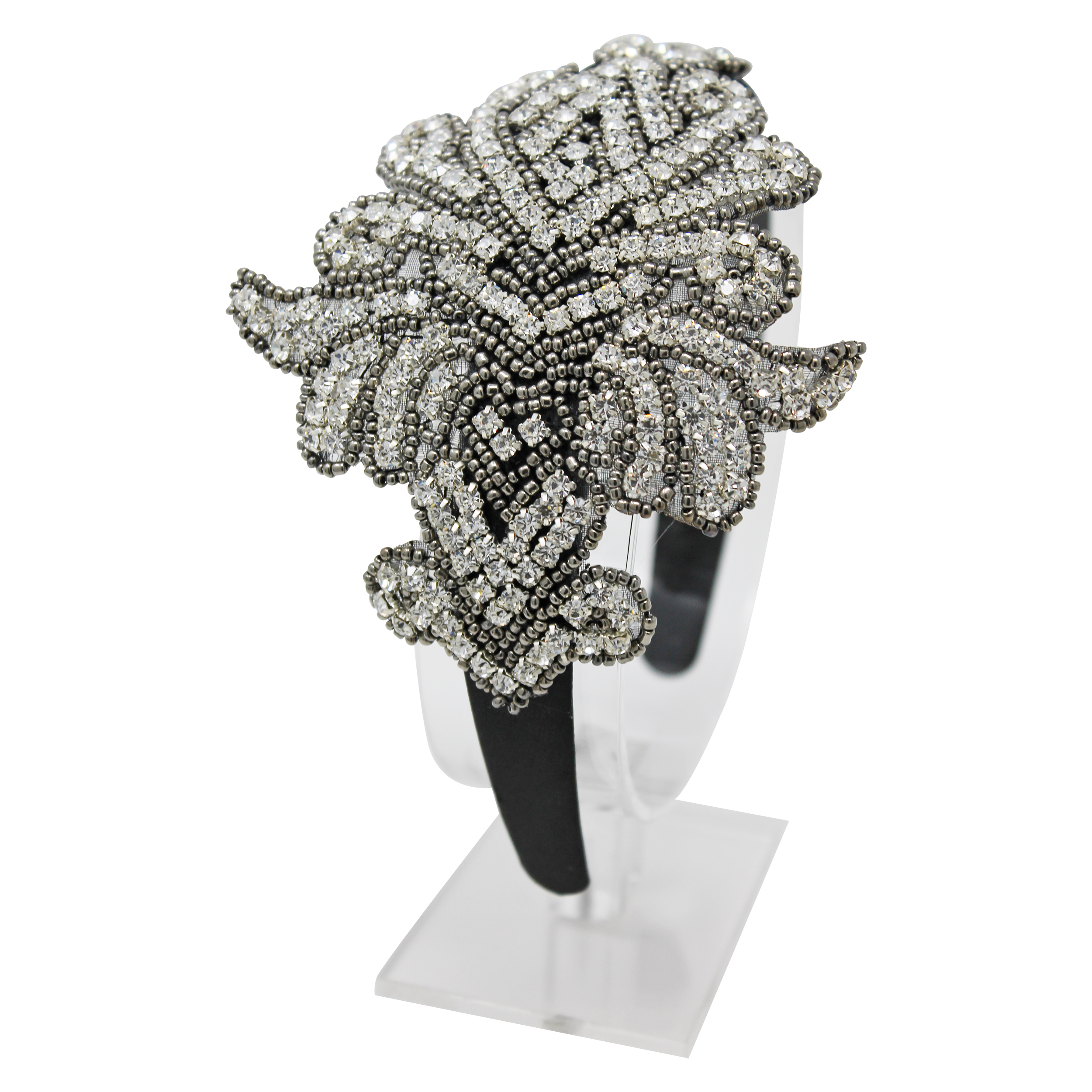 Black and bronze crystal patch on a satin alice band