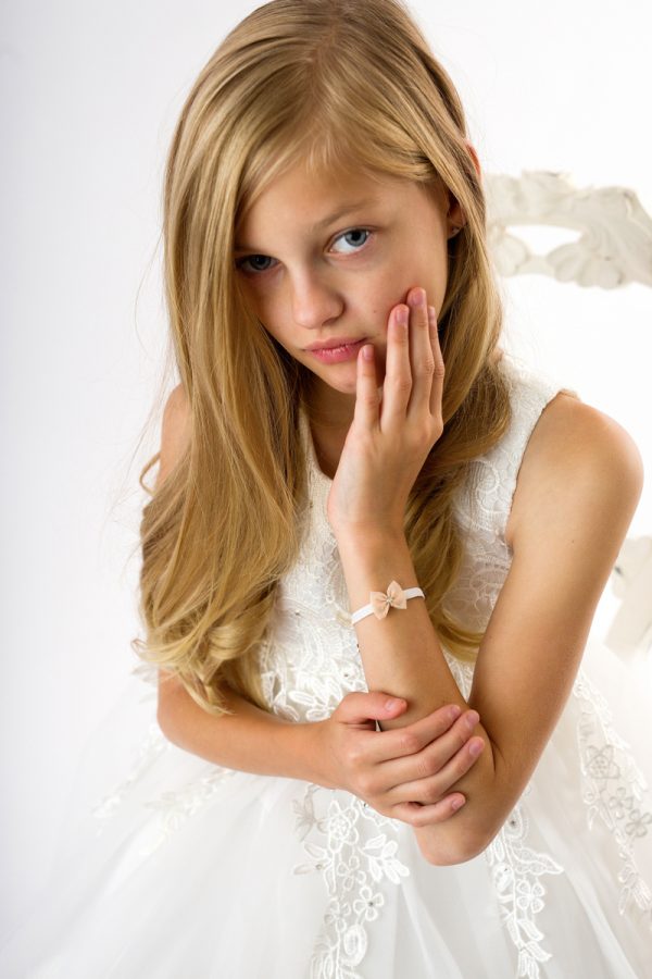 Champagne delicate small bow with Swarovski on a soft elastic bracelet