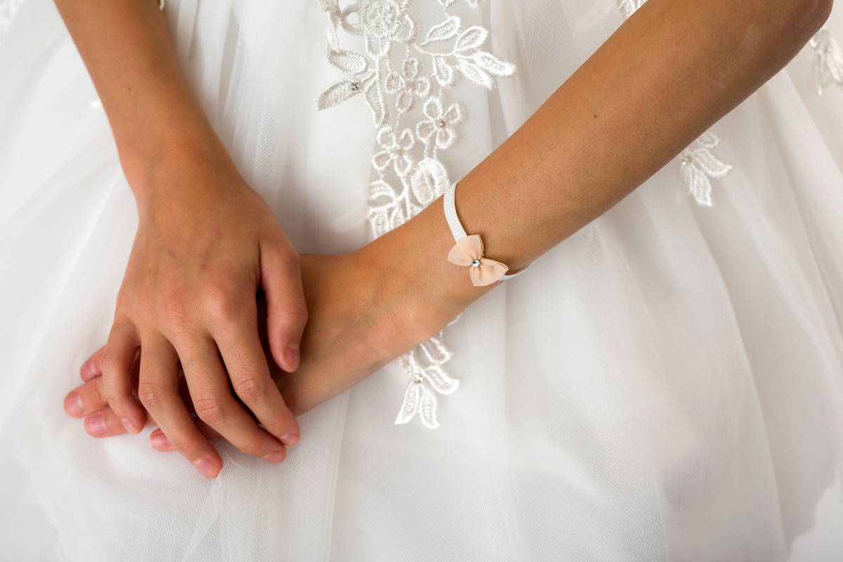 Outlet, SaleChampagne delicate small bow with Swarovski on a soft elastic bracelet