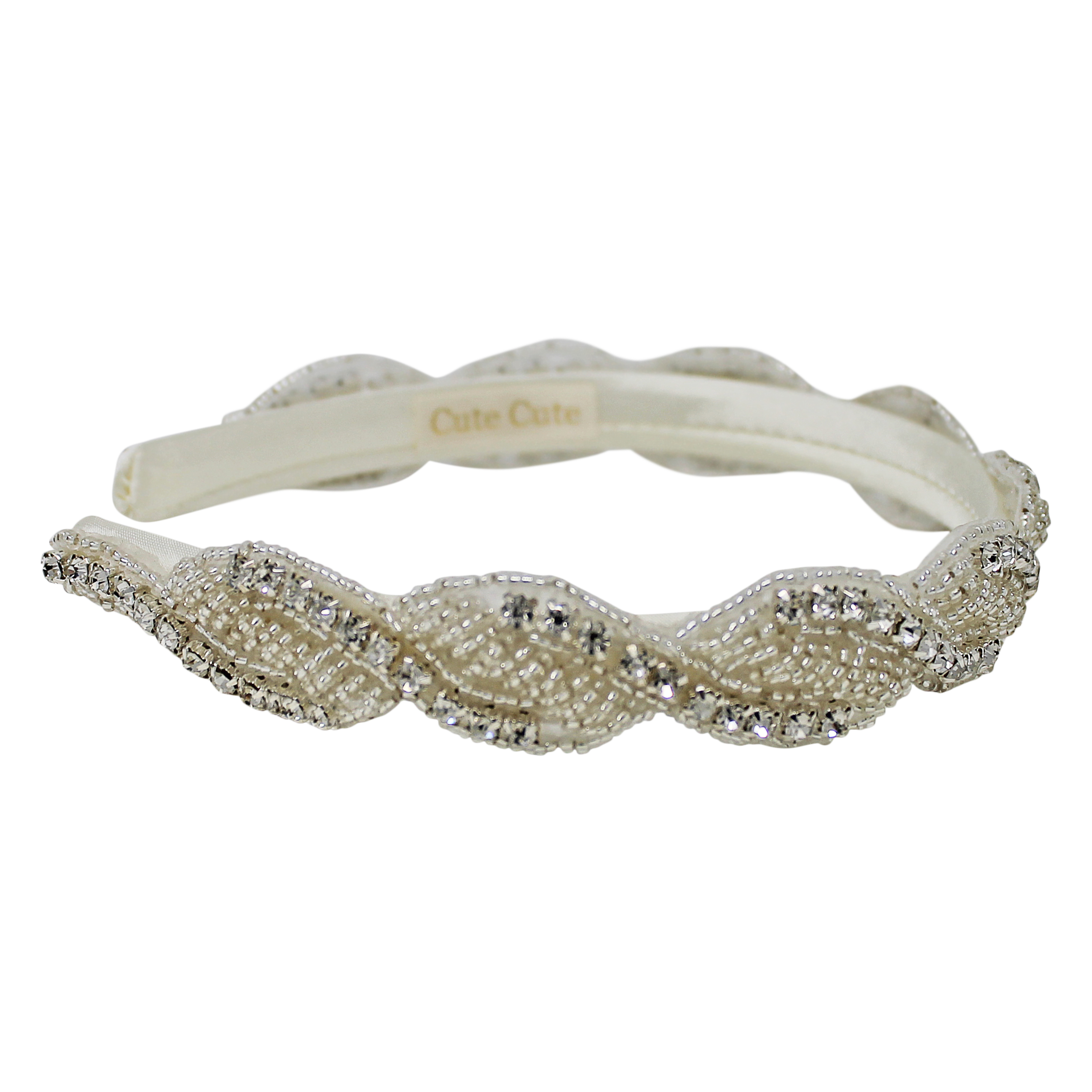 Crystal and pearl rhinestone trim on a satin alice band