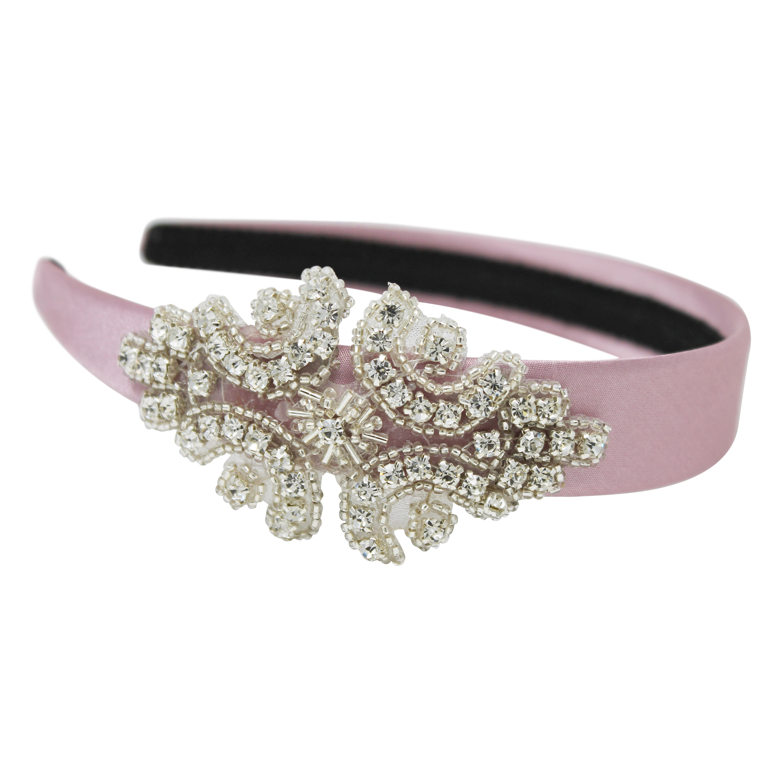 Dusky pink wide alice band with crystal patch.