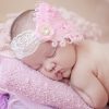 Exclusive, Headbands, PartyExclusive candy pink goose feather with Swarovski crystals and pink flower on a wide lace headband. It has a pretty pink silk flower which is topped with a silver and pink rhinestone