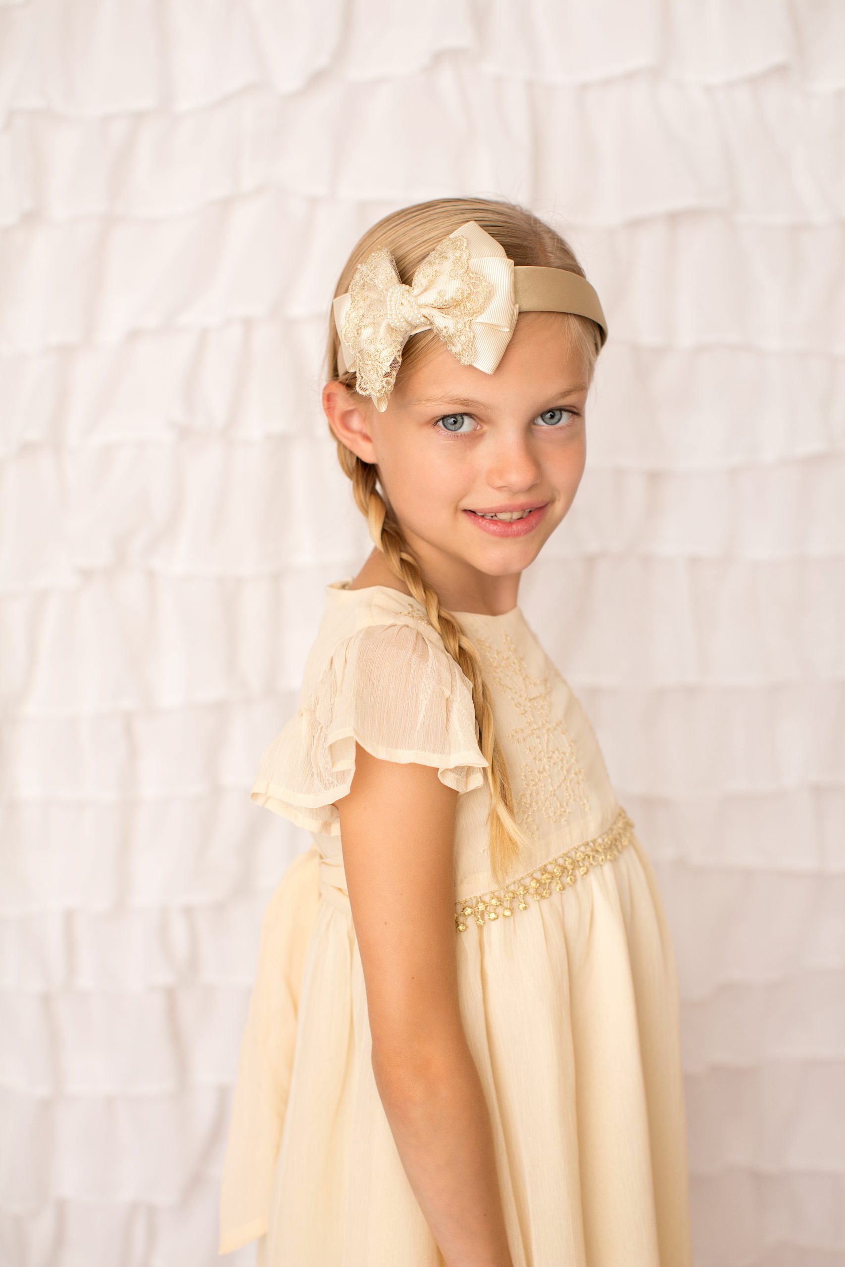 Exclusive gold and ivory oversized bow solid headband