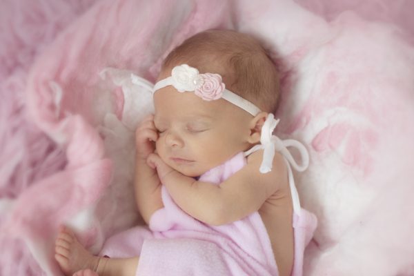 Felt pink and ivory roses decorated with pearl on elastic headband