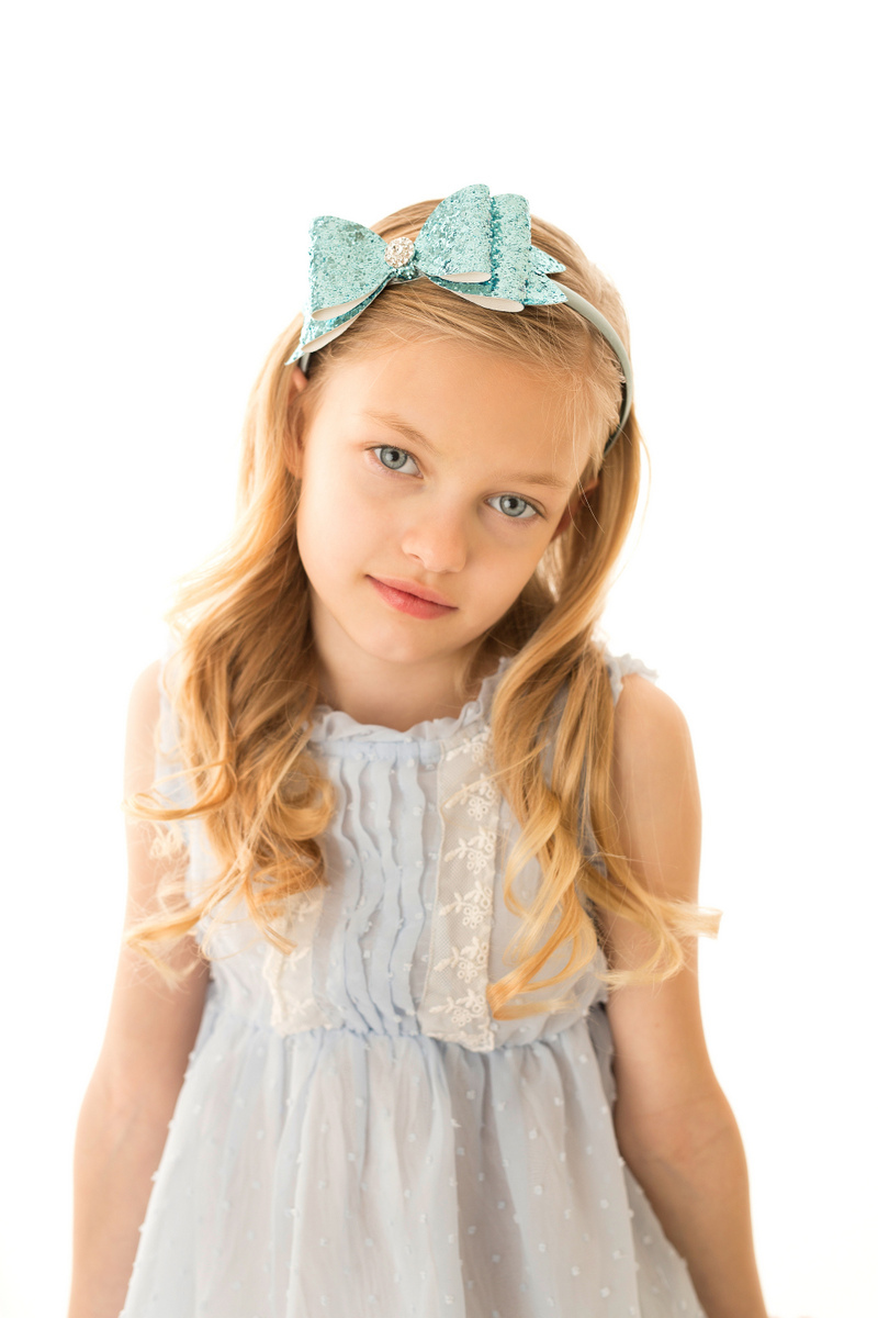 Outlet, SaleFrozen blue glitter bow decorated with rhinestone on a satin alice band