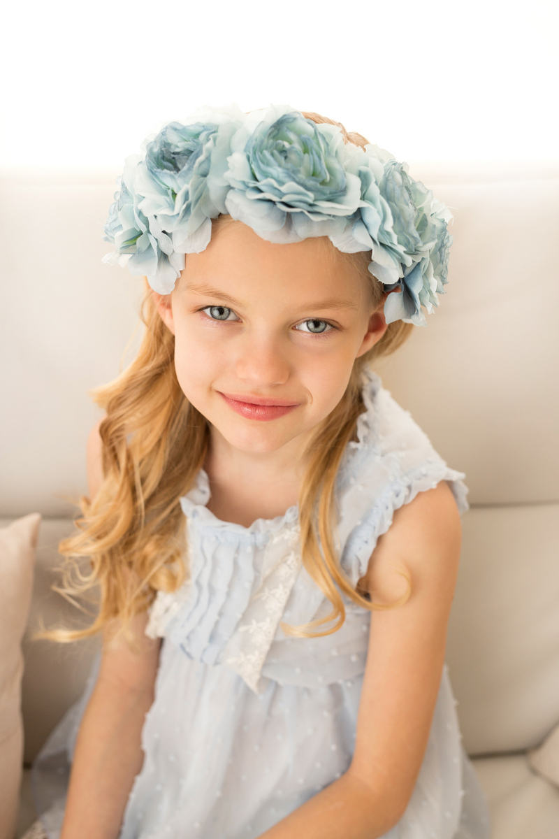 Ivory frayed flower on soft elastic lace