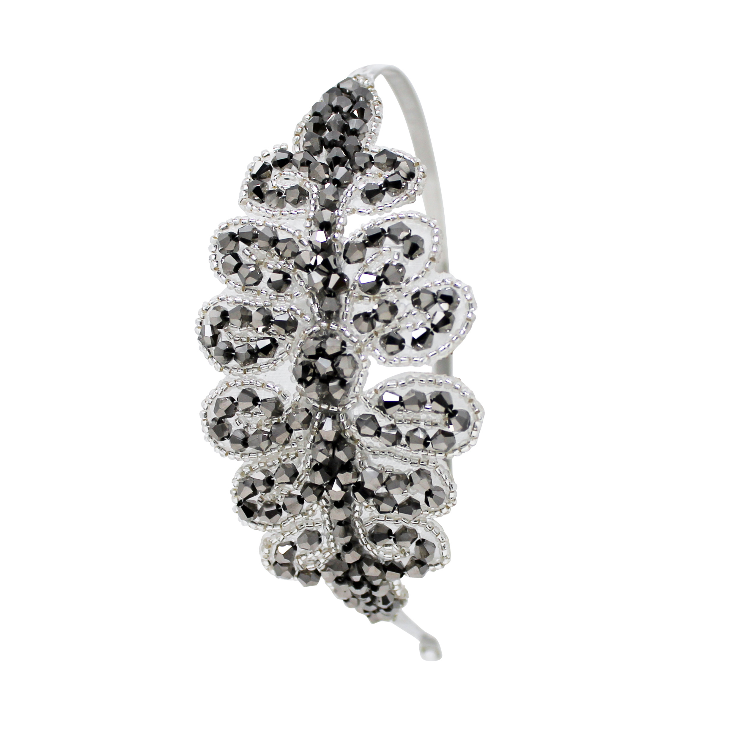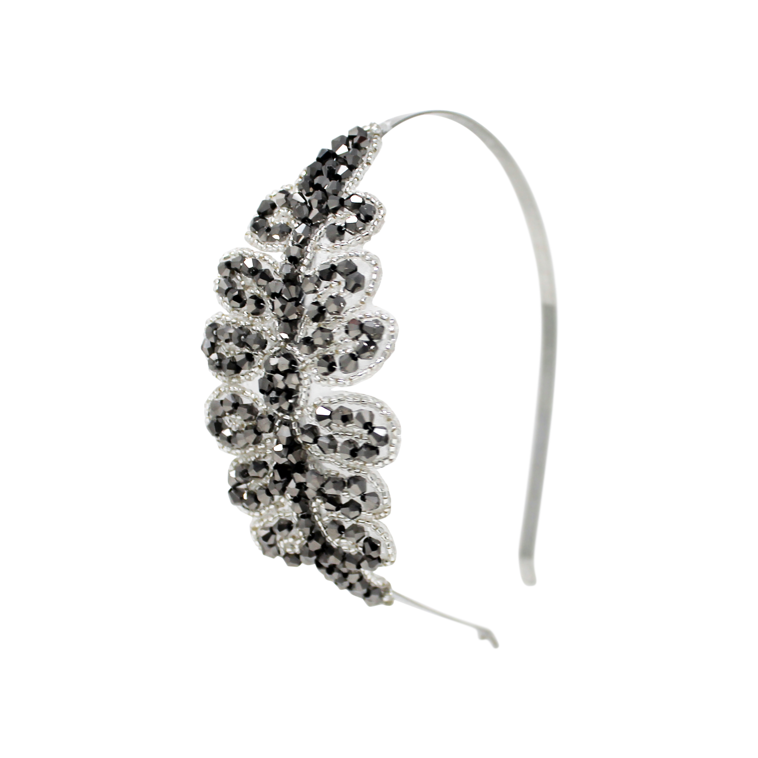 Grey and silver diamante trim on a slim metal alice band