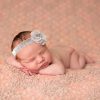 Grey chiffon flower decorated with stones and pearls on a silver elastic