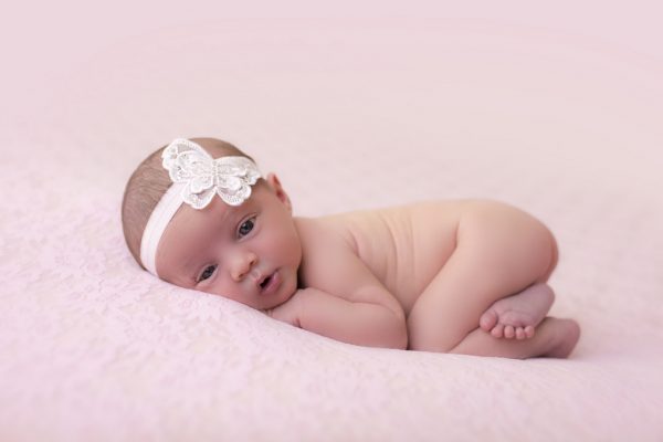 Ivory butterfly with Swarovski crystals on a soft ivory elastic headband.
