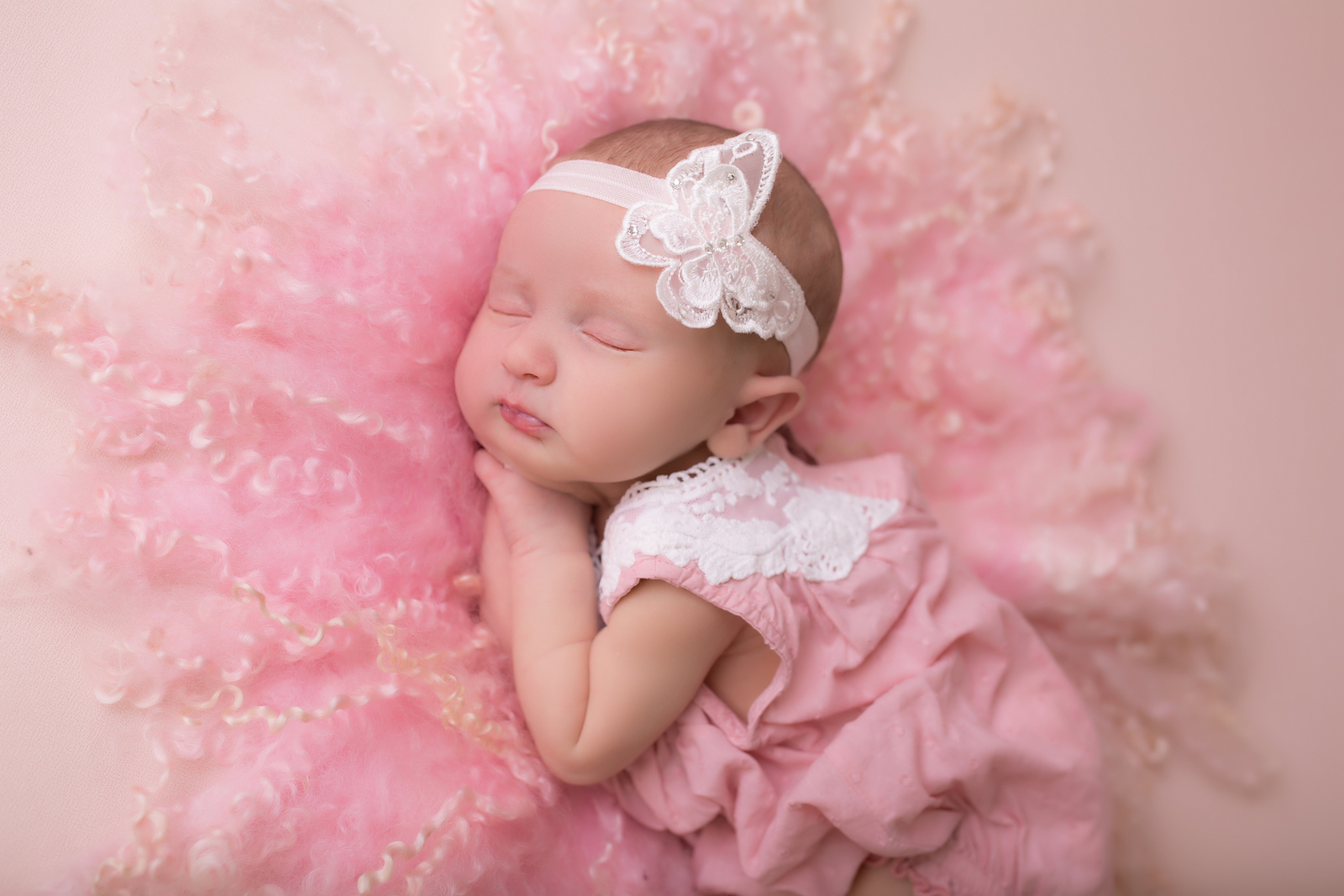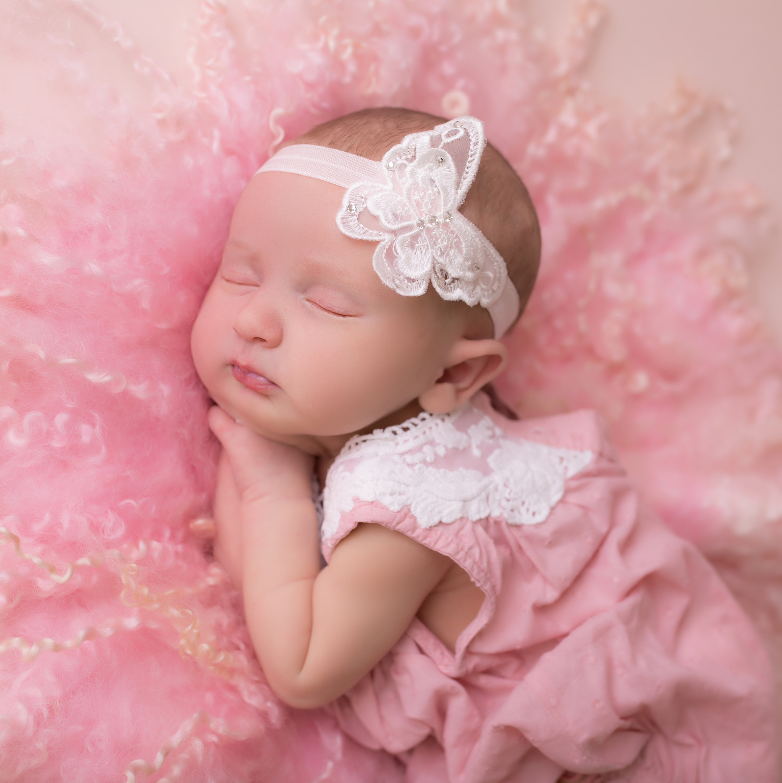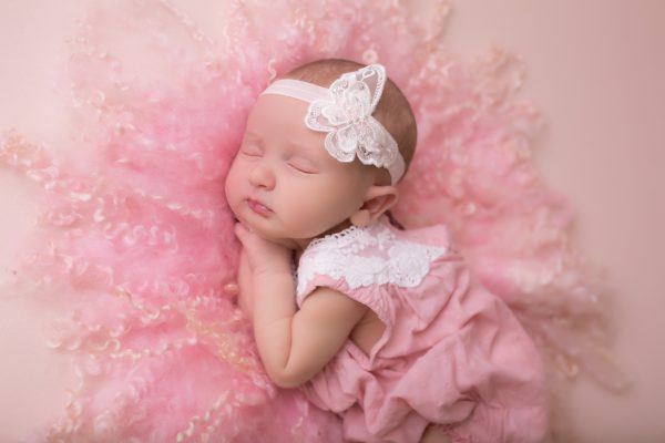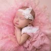 Ivory butterfly with Swarovski crystals on a soft pink elastic headband