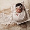 Large double tartan bow in beige and black with rhinestone on a elastic headband