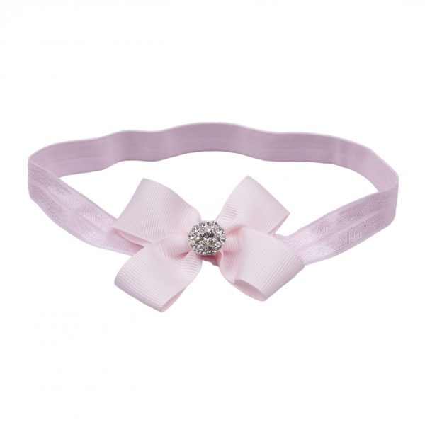 Medium pink double bow with rhinestone on a soft pink headband