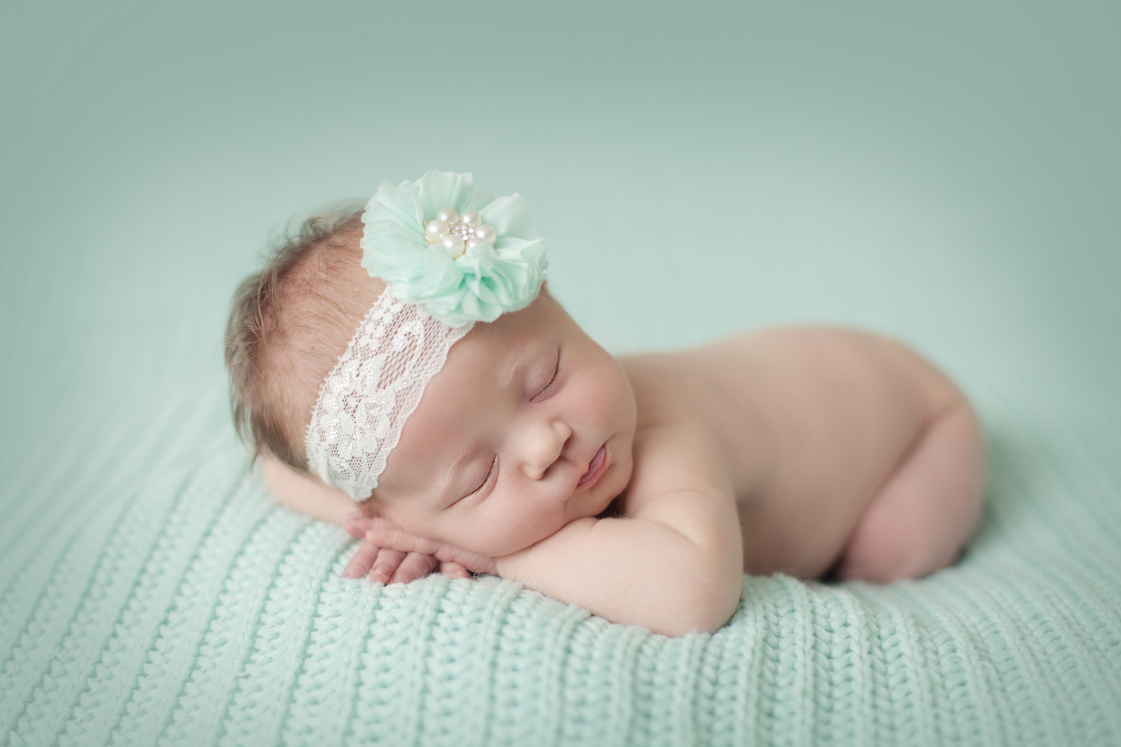 Mint chiffon flower decorated with rhinestone on soft elastic lace