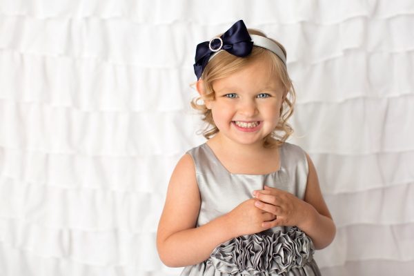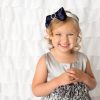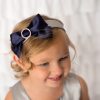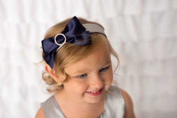 Navy satin bow with rhinestone on a satin silver aliceband