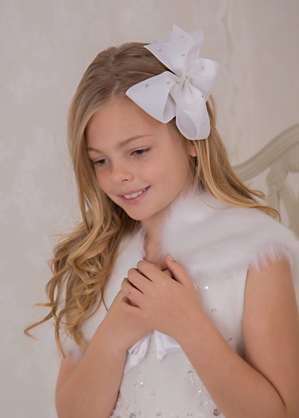Oversized 6’’ grosgrain bow with Swarovski crystals on an alligator clip.