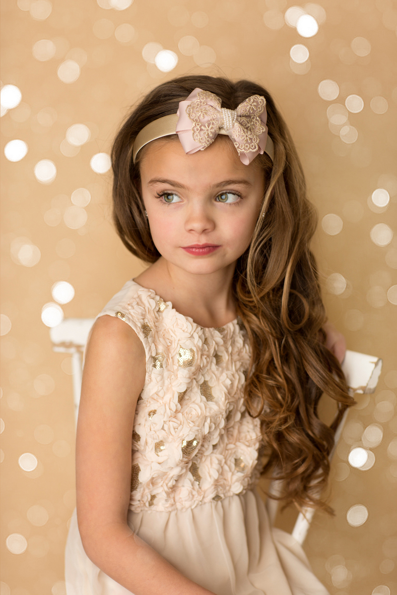 Outlet, Sale, Solid headbandsOversized bow in dusky pink with gold lace and pearls on alice band