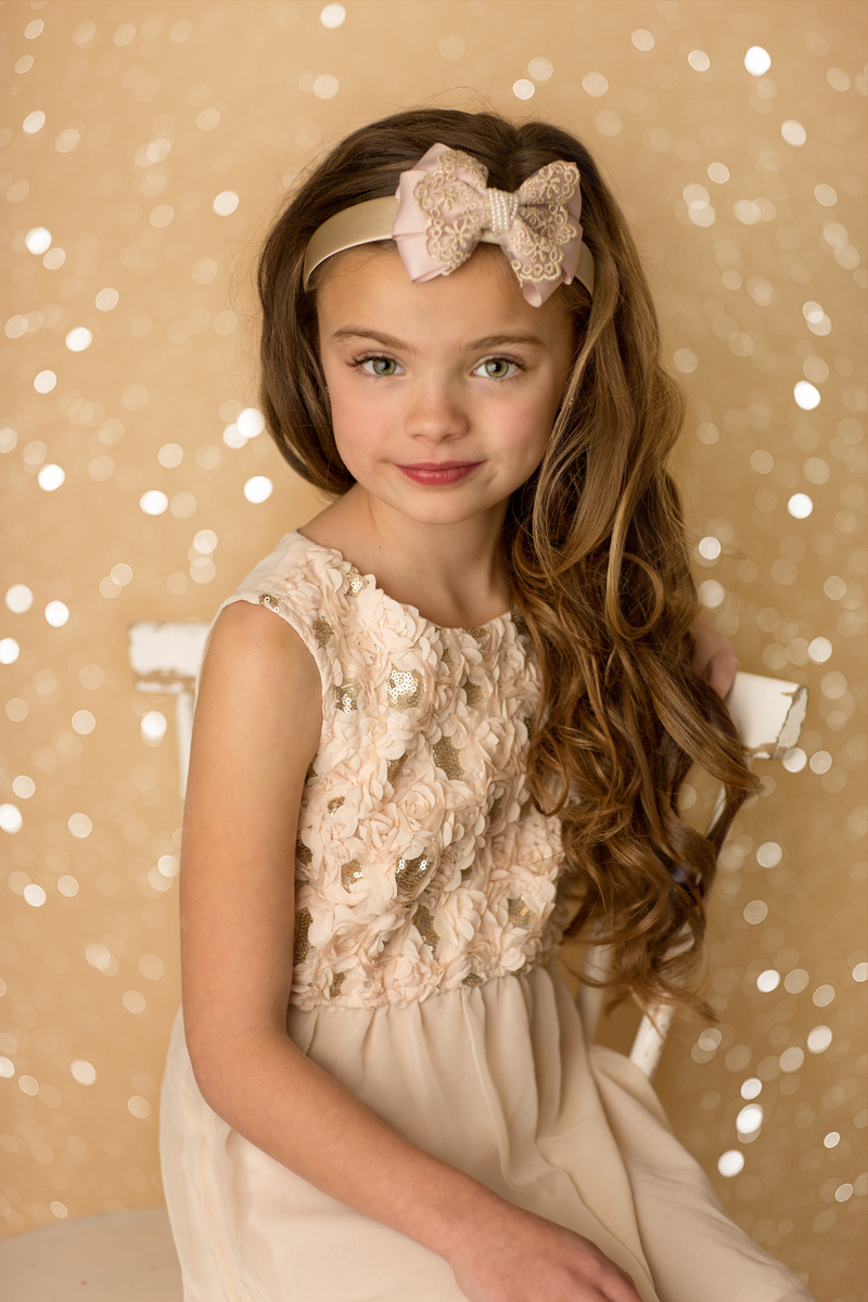 Oversized bow in dusky pink with gold lace and pearls on alice band