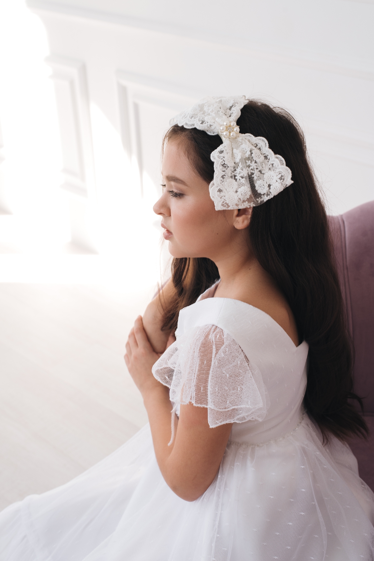 • Off white lace bow