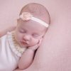 Outlet, SaleChiffon peach flower with pearl on soft elastic headband.