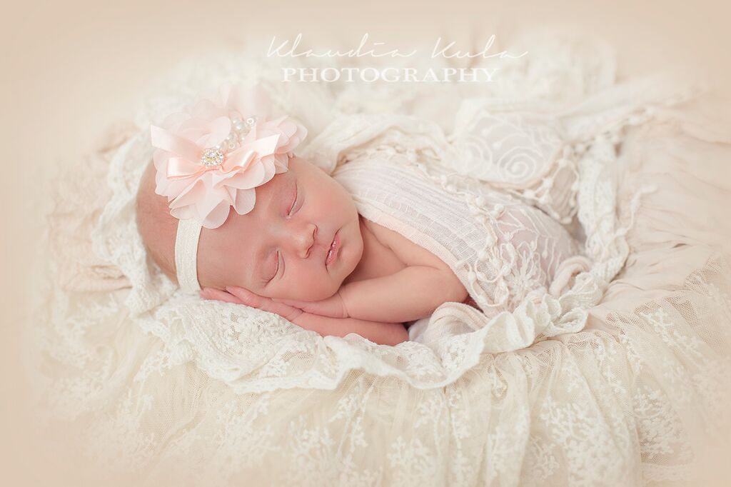 Oversized peach soft chiffon flower decorated with pearls and rhinestone on a soft elastic soft headband
