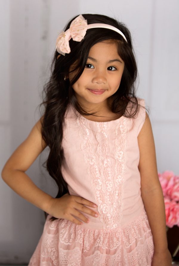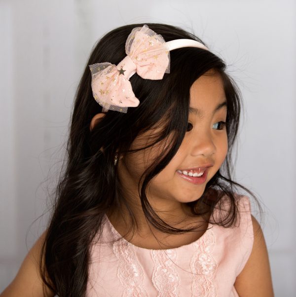 Outlet, SalePeach fabric bow with tulle gold stars on a satin alice band.