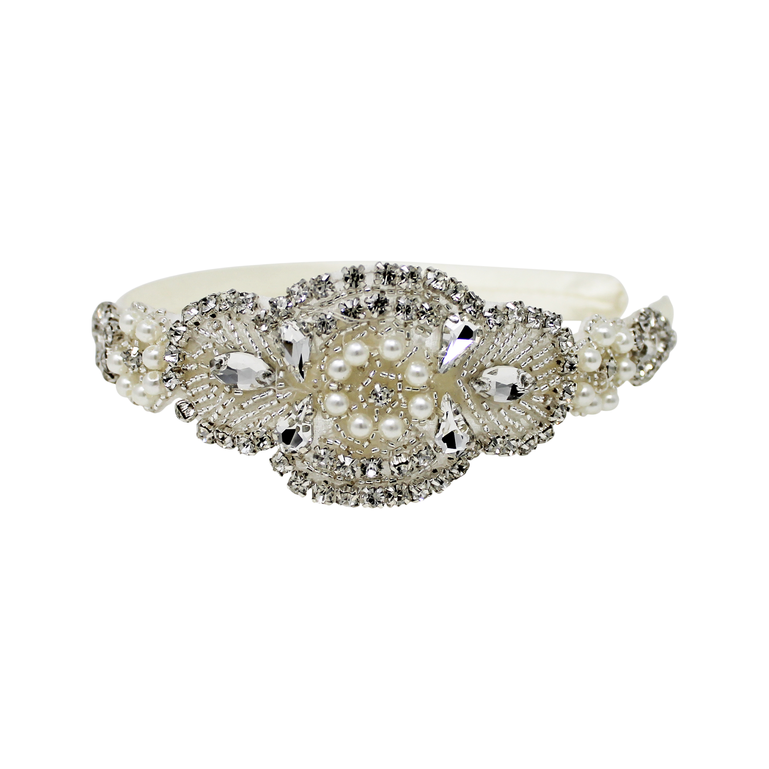Alice bands, New in, New in, WomanPearl and cased diamante trim patch on a ivory satin alice band.