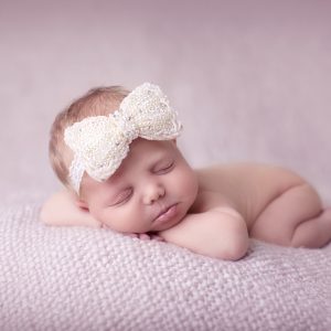 Pink chiffon flower decorated with pearl and stone diamanté centre on a soft elastic headband finished with an exclusive pearl and diamanté trim
