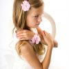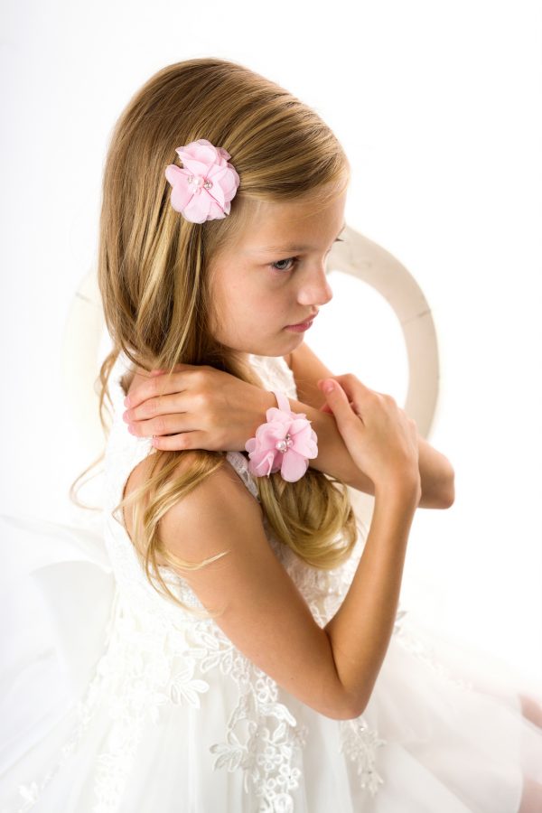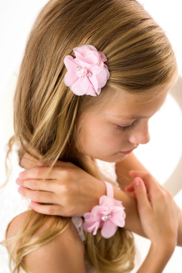 Clips, Hair Accessories, New in, New inPink chiffon flower with pearls and rhinestones on an alligator clip.