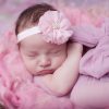 Pink chiffon flower with sparkly rhinestone on soft elastic headband