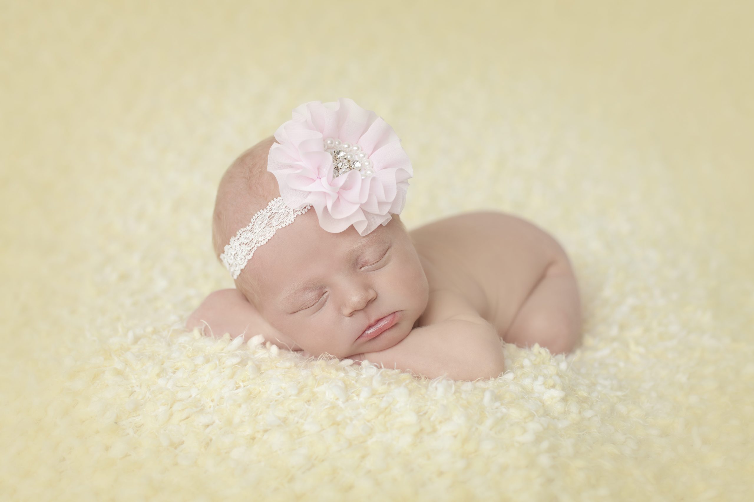 Pink chiffon flower with stones and pearls on a soft elastic lace headband