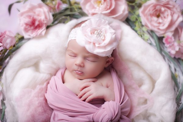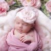 Pink flower with pearl rhinestone on soft elastic lace