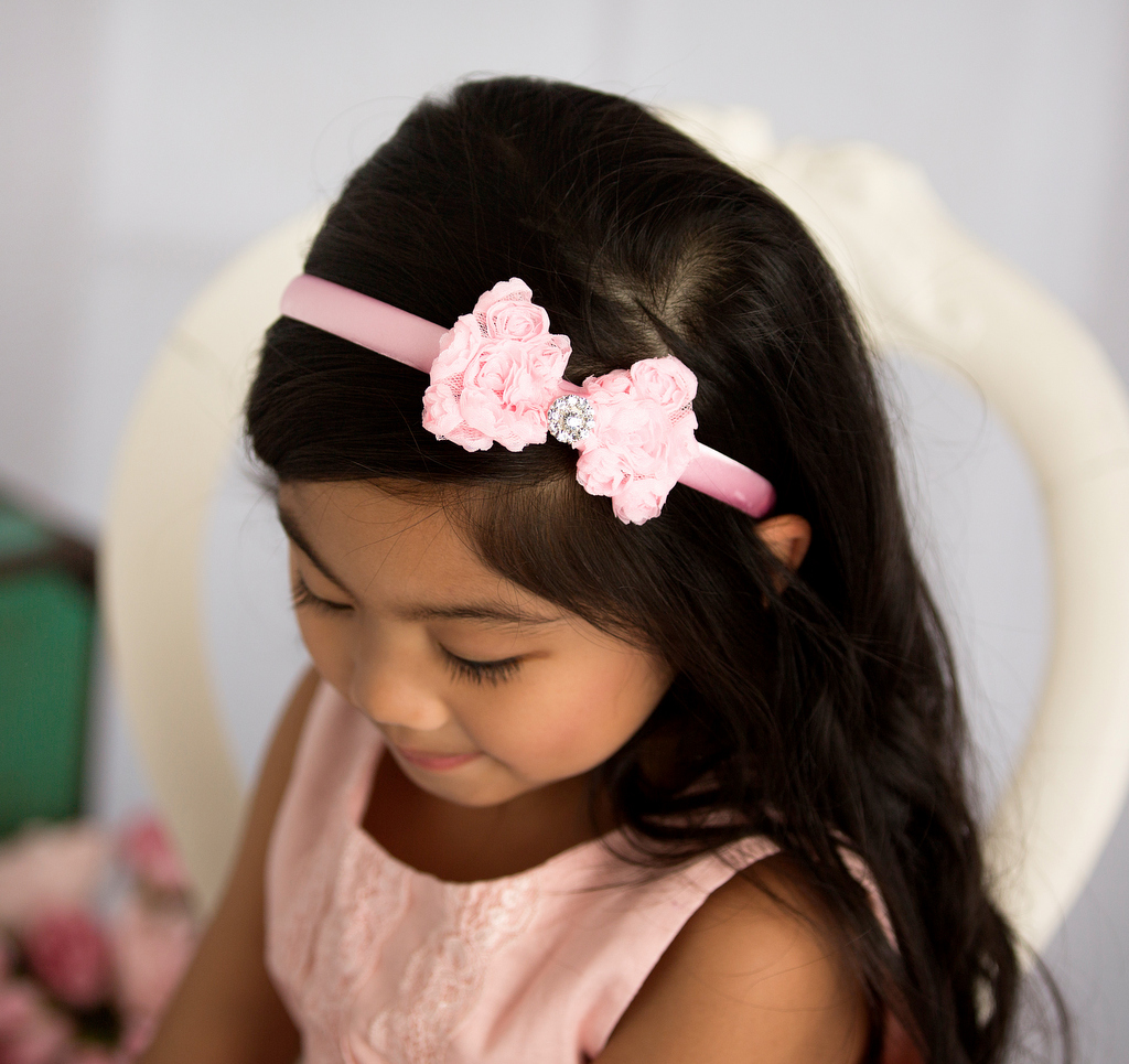 Outlet, SalePink rosey chiffon bow with sparkly rhinestone on alice band.