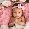 Outlet, SalePink satin bow with gorgeous rhinestone on a soft elastic headband.