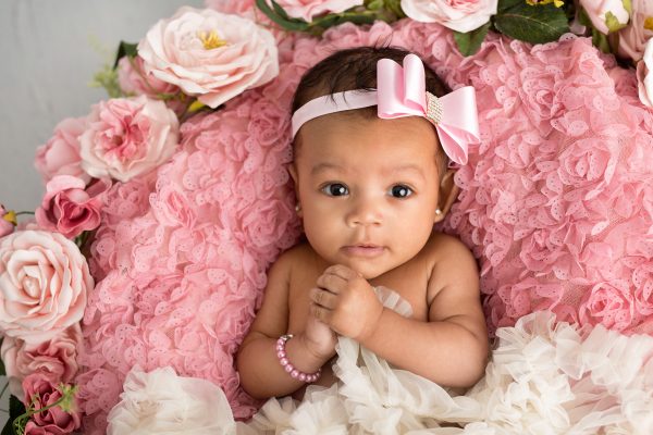 Pink satin bow with gorgeous rhinestone on soft elastic headband